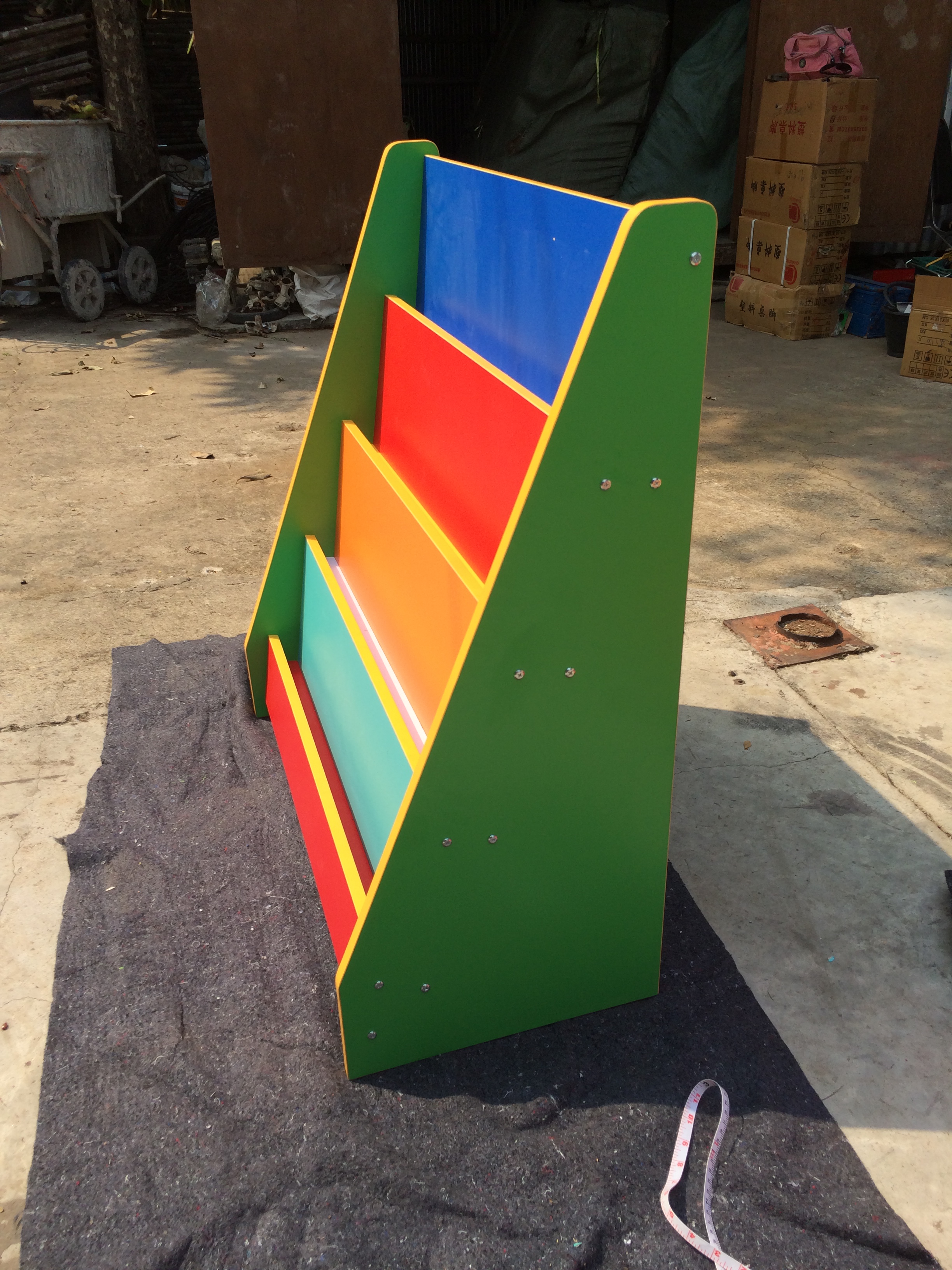 ชั้นวางหนังสือเด็กไม้หลากสี